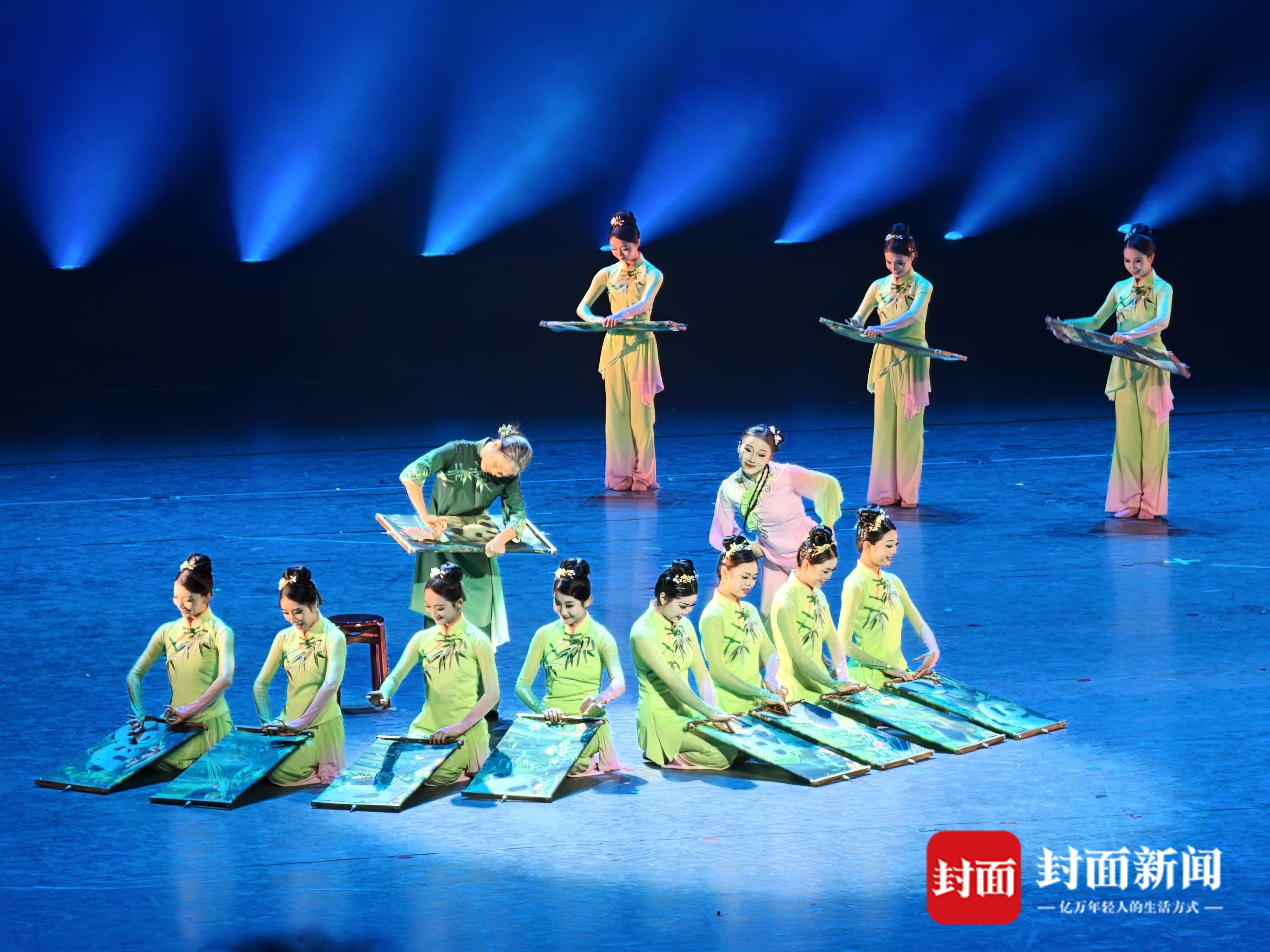 在接下来的比赛中,还有不少弘扬巴蜀文化的舞蹈作品将同台竞技。如由战旗飞舞歌舞团21位舞者演绎的群舞《唢呐》,就围绕丹棱唢呐的传承故事展开,通过舞蹈语言讲述一位老者将唢呐技艺传递给孙女,年轻一代接力传承的过程。
