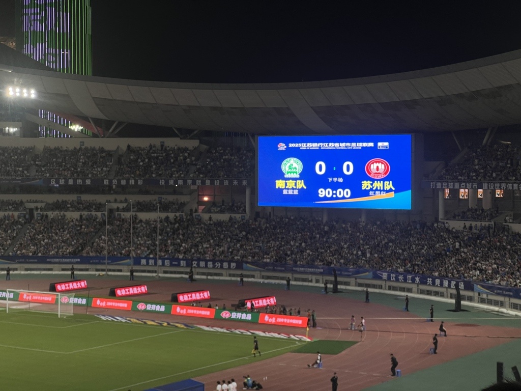 在60396名现场观众的注视下,“苏超”诞生了首场0比0平局的比赛。