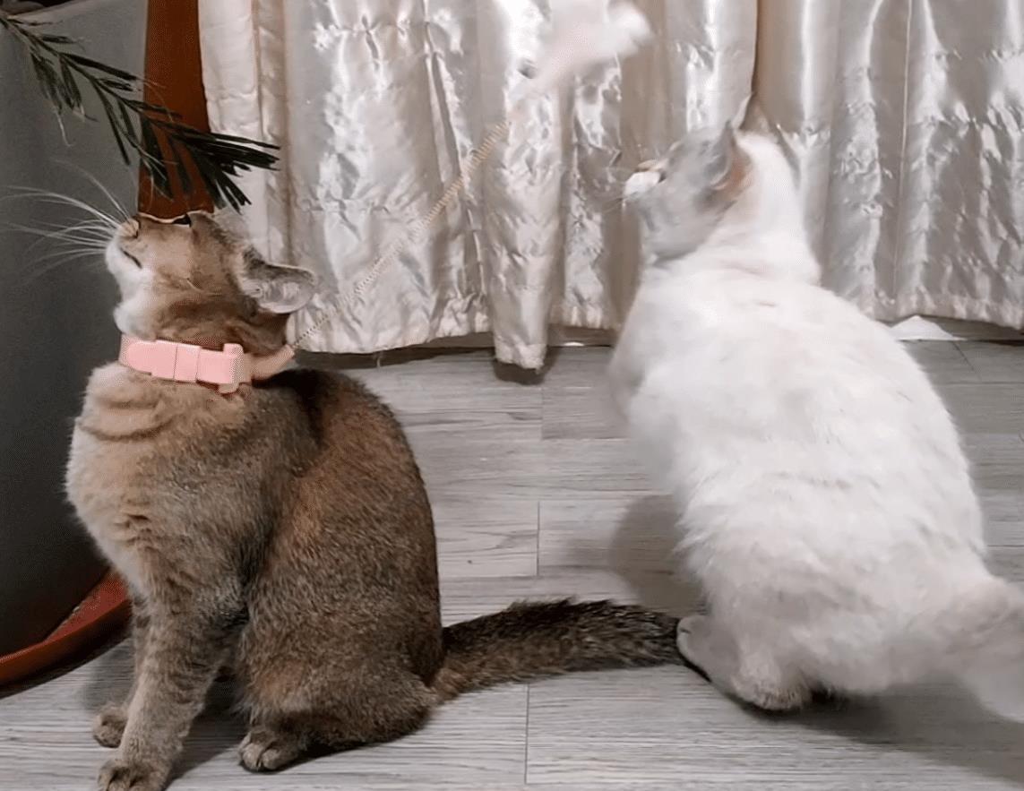 最后,猫咪看到了猎物。有时候家里有点小虫子,人眼看不到,猫看到了,就会去捕捉它,而在主人眼中,猫咪就是在跟空气斗智斗勇,所以看着有点神经质!