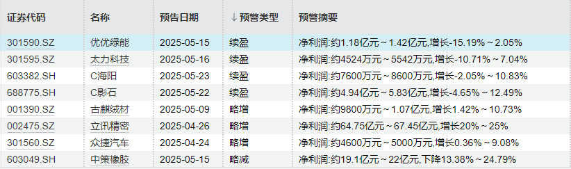 此外,影石创新、海阳科技、古麒绒材等三家公司预计归母净利润最大增幅均超过10%。