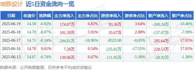 本站消息股巢配资,截至2025年6月19日收盘,地铁设计(003013)报收于14.58元,下跌0.82%,换手率0.44%,成交量1.76万手,成交额2564.48万元。