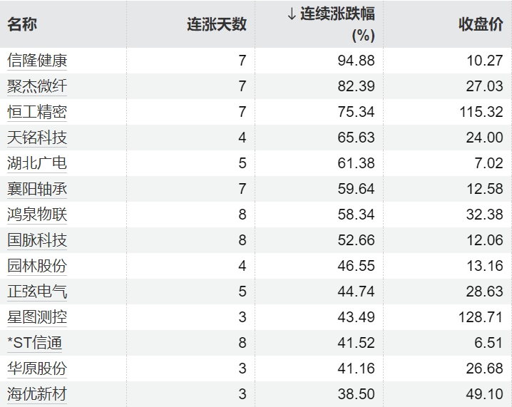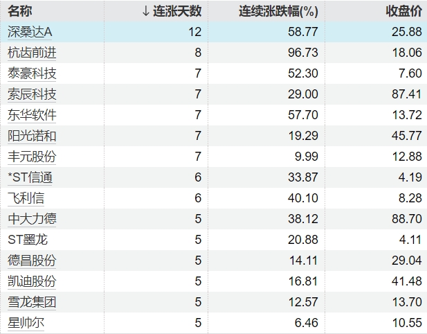 57只个股连续上涨5个交易日及以上牛8速配57只个股连续上涨5个交易日及以上